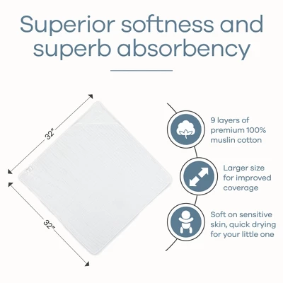 - Larger Size for Better Coverage – Comfy Cubs muslin cotton hooded towels are a bigger 32” x 32” in size which helps support newborn infants and growing toddlers, so they can enjoy better coverage from their heads to their little bottoms.