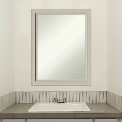 Give your bathroom the finishing touch with this 100% real wood Non-Beveled Wall Mirror framed with the Romano Silver Narrow frame. Individually made using traditional custom framing techniques, it has the quality you would expect from your local frame shop. It holds its value with premium finishing that can be appreciated up close. Because of our attention to detail and focus on artistry, architects, interior designers, and homeowners alike choose this mirror to create beautiful living spaces.