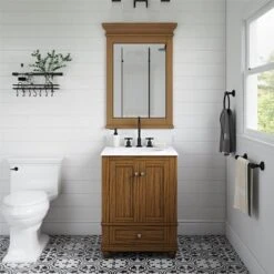 - MIRROR DETAILS: This mirror features premium glass for a clear, undistorted image and has a non-beveled surface to maximize the viewing area. The overall size of this bathroom mirror measures 23.5 x 29.5 inches, including the frame. Its reflective area measures 18 x 24 inches.