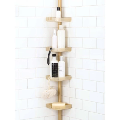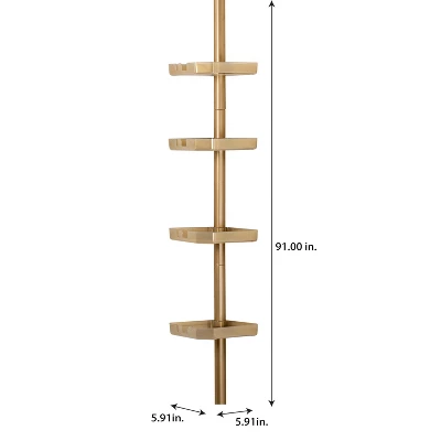 Create the storage you need in your bath or shower stall with the Bath Bliss 4 tier tension shower caddy organizer. Designed with spring loaded tension rod that expands from 4Ft to 8.5Ft to fit perfectly in the corner of your shower without having to mount shelves. The organizer has 4 separate shelves to hold your value size bottles and built in accessory hooks that are great for washcloths, razors or loofahs. The shelves are all self draining to prevent soap scum build up and mildew. Easy to install in your shower with no tools required. Add storage and organization with the Bath Bliss 4 tier corner shower caddy!