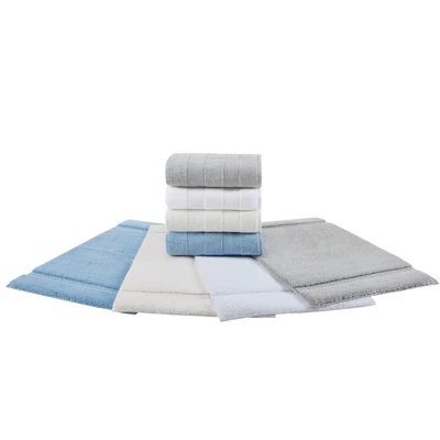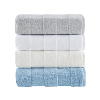Our Solid Stripe 600gsm Cotton Towel 6 Piece Set offers true luxury and comfort for your bathroom decor. Featuring a modern design with wide bands of hi-low terry loop for a textured stripe-like look; this 600gsm towel set is made from zero twist cotton yarns for a naturally soft and absorbent towel, while also durable and quick drying. Each towel is finished with an Ultra Fresh anti-microbial treatment for health and wellness – providing odor control, inhibiting bacteria buildup, and keeping linen fresher, longer. Active for multiple washes, this treatment implements a superior long-lasting durable performance. In addition, these towels are also OEKO-TEX certified, meaning they do not contain any harmful substances or chemicals, ensuring quality comfort and wellness. Machine washable for easy care and incredibly soft and thick, this 600gsm solid stripe cotton towel set easily brings true luxury and comfort to your bathroom. Set includes: 2 standard 28×54″ bath towels, 2 standard 16×26″ hand towels, and 2 standard 12×12″ wash towels.