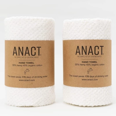 - 352 days of drinking water saved with 2 Anact hand towels compared to conventional cotton