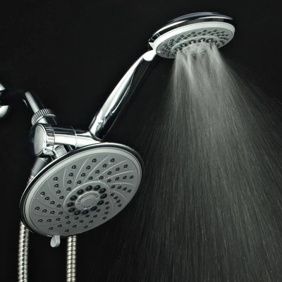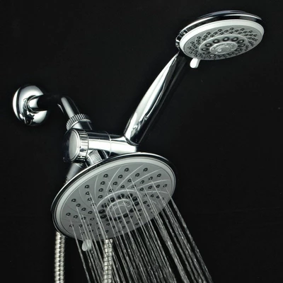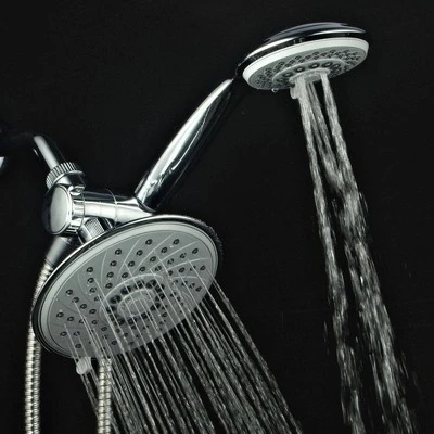 3-Way Multi-Function Rainfall Shower Head/Handheld Combo combines the 6-inch Rainfall showerhead and 6-setting 4-inch handheld shower for a smooth, flexible, and reliable showering experience. Settings include Power Rain, Pulsating Massage, Hydrating Mist, Rain/Massage, Rain/Mist, and Water-saving Economy Rain. The shower head also includes a stainless steel hose and a 3-way water diverter with an angle-adjustable bracket to direct water in multiple directions. The rub-clean nozzles will keep your showerheads operating at peak performance. Tools-free installation and comes with a Limited Lifetime Warranty.