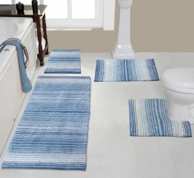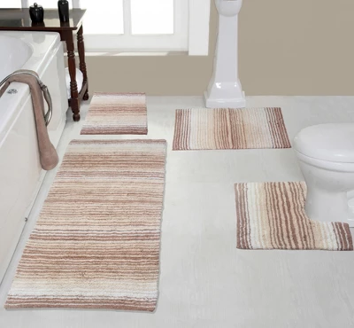 Gradiation Rug Collection includes attractive rugs that feature geometric lines in vertical fashion. Spruce up your bathroom area with these multicoloured rugs for both, nicely-done interior and functionality. Made in India, each rug is highly absorbent. With them on the floor, rest assured the floor will be dry even after a shower. Step on them and they won’t slip. The collection has single rugs and sets to make sure all your needs are met. Gradiations rugs are available in different colours, so you can choose the best for your home interior. Special cut-out rugs are available for toilet seats as well.