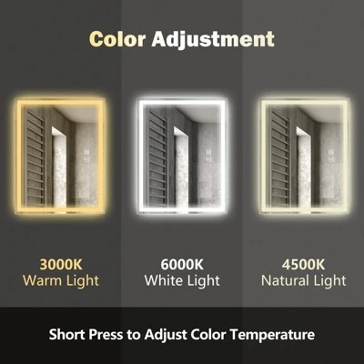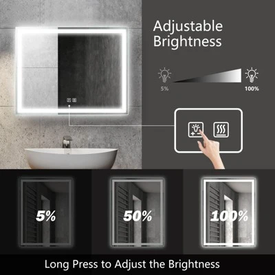 - Smart Controls & Stay Fog-Free:Turn the lights on and off without touching the mirror – the wall switch and mirror touch switch are interconnected and feature memory functions.Say goodbye to post-shower fog. Built-in defogger ensures the LED vanity mirror stays clear and fog-free, the anti-fog switches are a separate control, which is safe and energy-saving, auto-shutting off after an hour.