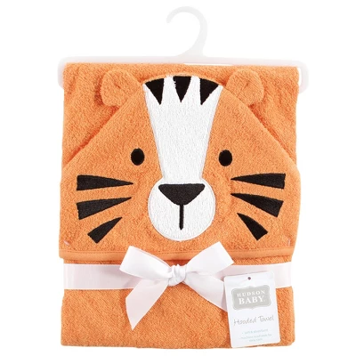 Hudson Baby animal face hooded towels are made of 100% woven cotton polyester terry and are available in a variety of adorable animal face options. Our hooded towels are more than generously sized at 30×30 inches to cover baby head to toe after bath or swim time. Our fun designs and large towels are perfect for baby and toddlers.