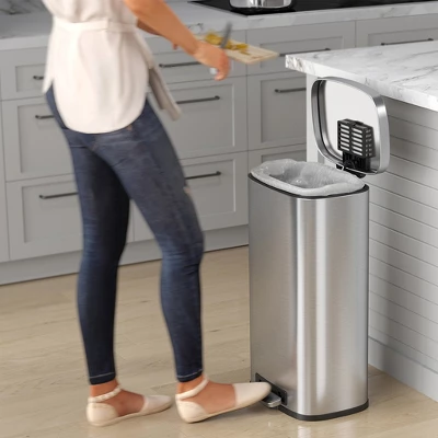 From its smooth pedal operation and silent lid close, to its space-saving design and AbsorbX Odor Control System, SoftStep 8 Gallon Rectangular Step Pedal Trash Can is the perfect ktichen bin. The elegant, brushed stainless steel is fingerprint-proof and smudge-resistant, with an elegance that matches any decor. The removable inner bucket makes emptying the trash easy and quick.