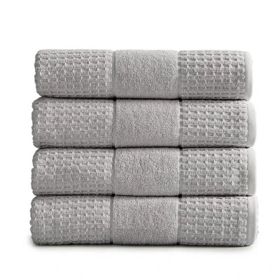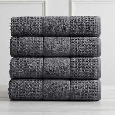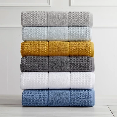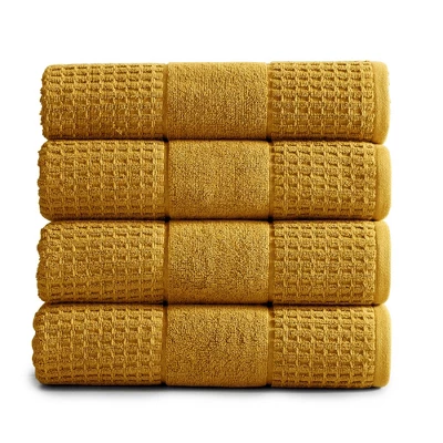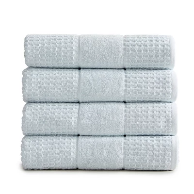 Made from premium quality 100% Cotton, these Harper Collection 4-Pack Bath Towel Sets by Market & Place provide ultimate softness, absorbency, and durability. Features a variety of classic solid hues with a textured waffle weave to add elegance and flair to any bathroom décor. These towels are super durable and machine washable to provide you with long lasting use and enjoyment; once washed, these towels fluff right back up. Makes a perfect gift for weddings, birthdays, holidays, and more!