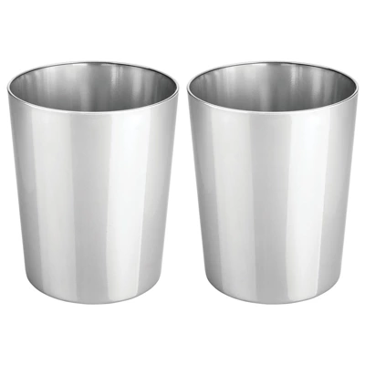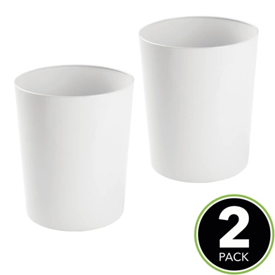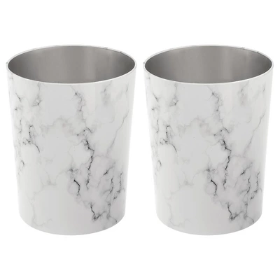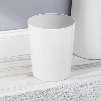 This Round Trash Can Wastebasket from mDesign is sized perfectly for smaller spaces, but still have plenty of room for your recyclables and garbage. Made of high-quality durable materials, this can will hold up to everyday use. It can be used for trash, recycling, or storing household items. The beautiful slim, round design, combined with the modern metal finishes, makes it the perfect complement to any room in your home. modern living by Design.