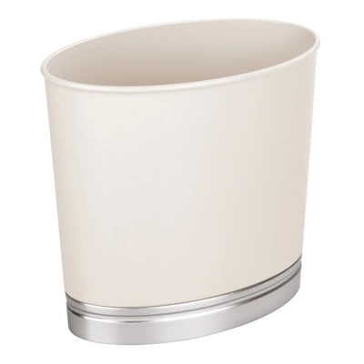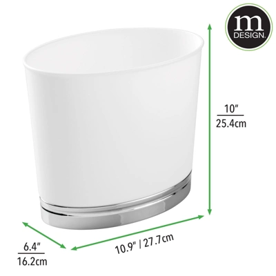 The mDesign trash can wastebaskets are sized perfectly for smaller spaces, but still have plenty of room for your recyclables and garbage. Made of high quality durable materials, this can will hold up to everyday use. It can be used for trash, recycling, or storing household items. The slim oval design combined with the modern two-tone finishes makes itthe perfect complement to any home.