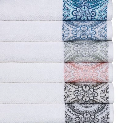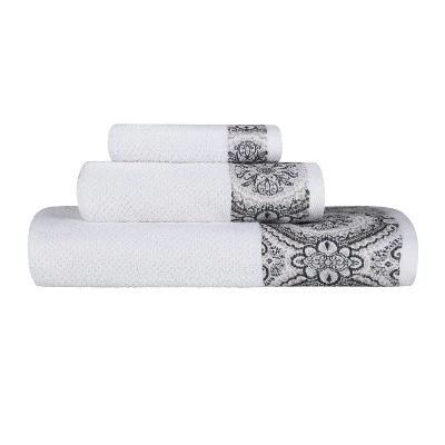 The elegant Aaliya Medallion Turkish Cotton Highly Absorbent 3 Piece Jacquard Towel Set by Blue Nile Mills combines cozy modern style with a dash of traditional appeal. Crafted from a premium Cotton construction, this coordinated 3 piece set includes; one bath, one hand, and one face towel/ washcloth to create a seamless traditional look. For comfort and durability, each towel is highly absorbent, perfect for the shower, bath, or beach. The pattern is a unique textured white with a colored medallion border design that will match with any modern, traditional, or classic space.