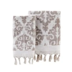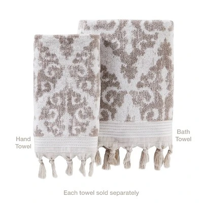 The unsurpassed style of the Mirage Fringe bath towel will add luxury to your bathroom. The reversible, yarn dyed towel with woven jacquard medallion design is highlighted with a striped end hem and hand knotted fringe. Beautiful enough for guests but sturdy enough for every day use, the Mirage Fringe bath towel will be a delight in any bathroom.