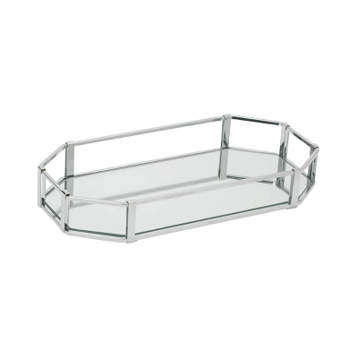 Don’t let scattered trinkets and overflowing cabinets ruin your bathroom decor with the Bathroom Tray from Home Details. Crafted from sturdy metal for durability and lasting use, this decorative bathroom tray features a chrome-finished, open octagonal design with a reflective glass base that brings a contemporary touch to your bathroom. Designed to fit your bathroom countertops, dressers or vanity, this bath accessory tray provides a stylish yet functional space to keep your perfume bottles, toiletries and medicine bottles neatly organized.