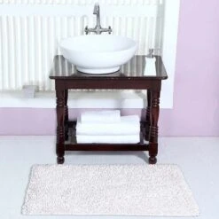 Link Bath Rug 220 GSF Soft Plush Cotton Non Skid Back White By Knightsbridge