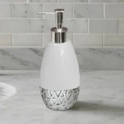 Set Of 3 Emory Vintage Glass Plated Soap Pump & Q-tip Jar Set With Vanity Tray Pewter – Nu Steel