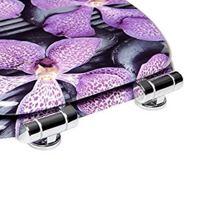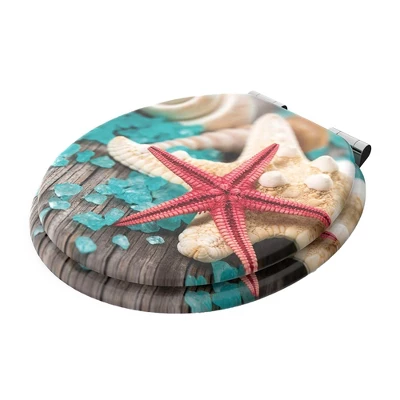 Transform your toilet into the centerpiece of your bathroom decor with the Sanilo Round Soft Close Molded Wood Adjustable Toilet Seat.This round toilet seat includes a decorative design that sets this apart from standard white toilet seats, featuring a sharp, realistic image of weathered wood. The seat is constructed of molded wood, outfitted with durable stainless steel hinges. The soft-close decorative toilet lid is designed to resist slamming and shut silently, rigorously tested for up to 50,000 uses. The hinges allow you to adjust the length of the bowl to adapt to size differences in different manufacturers’ elongated bowls. All the hardware necessary for a quick and easy installation is included. Supporting up to 440 pounds, this lid is the perfect addition to any bariatric bathroom.Start planning your new bathroom today with a more decorative seat. The Sanilo Round Soft Close Molded Wood Adjustable Toilet Seat serves as a stunning focal point.