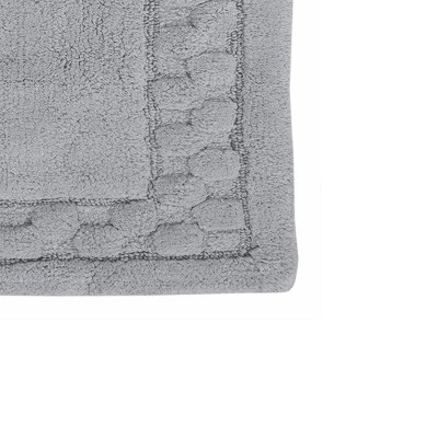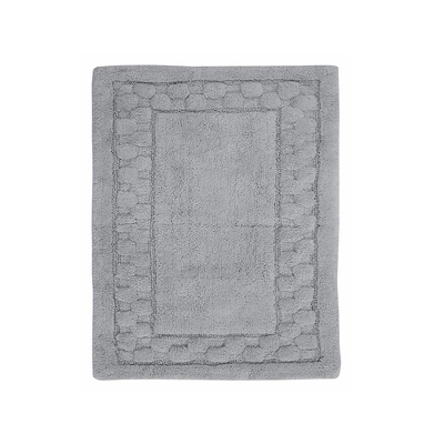Luxurious and super soft, this cotton bath rug with a non-slip back in a sculptured border design is a fine addition to your bathroom décor. This luxurious bath rug is made with 100% soft plush cotton. It’s super soft to the touch with a dense lush pile. It’s the ultimate in comfort while being extremely absorbent and functional. The elegant range of contemporary colors will enhance any bathroom decor. Color: Silver. Available sizes: 17″ x 24″ and 24″ x 40″.