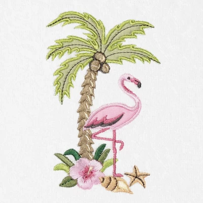 This set of decorative hand towels are perfect for gift-giving! Made of 100% Turkish cotton with plush looped terry cloth, they get softer with each washing. The flamingo and palm tree design is fun and whimsical, and just right for the tropics loving person. Each hand towel measures 16″ x 30″. Bright white with vivid embroidery.