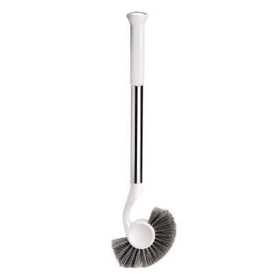 The simplehuman toilet brush has a specially designed crescent shape head reaches hard-to-clean areas around the rim. Unique magnetic collar secures the cover to the toilet brush so you can carry them together without any drips. Slim dome-shaped cover conveniently stores the toilet brush when not in use, keeping it hygienic and discreetly hidden.