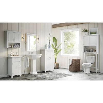 Make the most of your space with this two-door wall cabinet. Hide clutter behind the inset doors and customize shelf heights with the adjustable interior shelf. Featuring two-tone, satin/mirror-finish door handles, this wall cabinet adds functional style to any room. Perfect for storing bathroom toiletries or laundry room necessities, and displaying your favorite home decor pieces on the open shelf below.