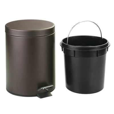- Metal Step Trash Can with Lid, 5 Liter Waste Basket Bin with Insert for Bathroom, Kitchen, Office, 8" x 8" x 11", Bronze