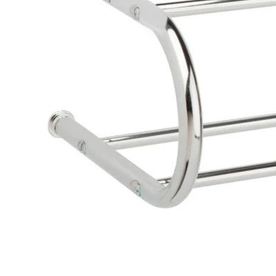 Constructed of durable metal this chrome towel rack offers storage and style. Measuring 22.64″ x 11.81″ x 7.48″, it offers plenty of storage space for any size room in your home. Dual towel bars offer increased carrying capacity. This sleek design is ideal for hanging and folded towels and other bathroom accessories.
